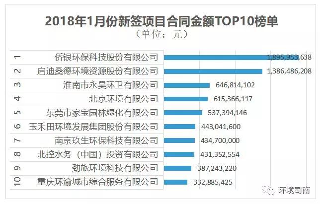 2018年1月份環衛市場化簽約能力TOP10榜單