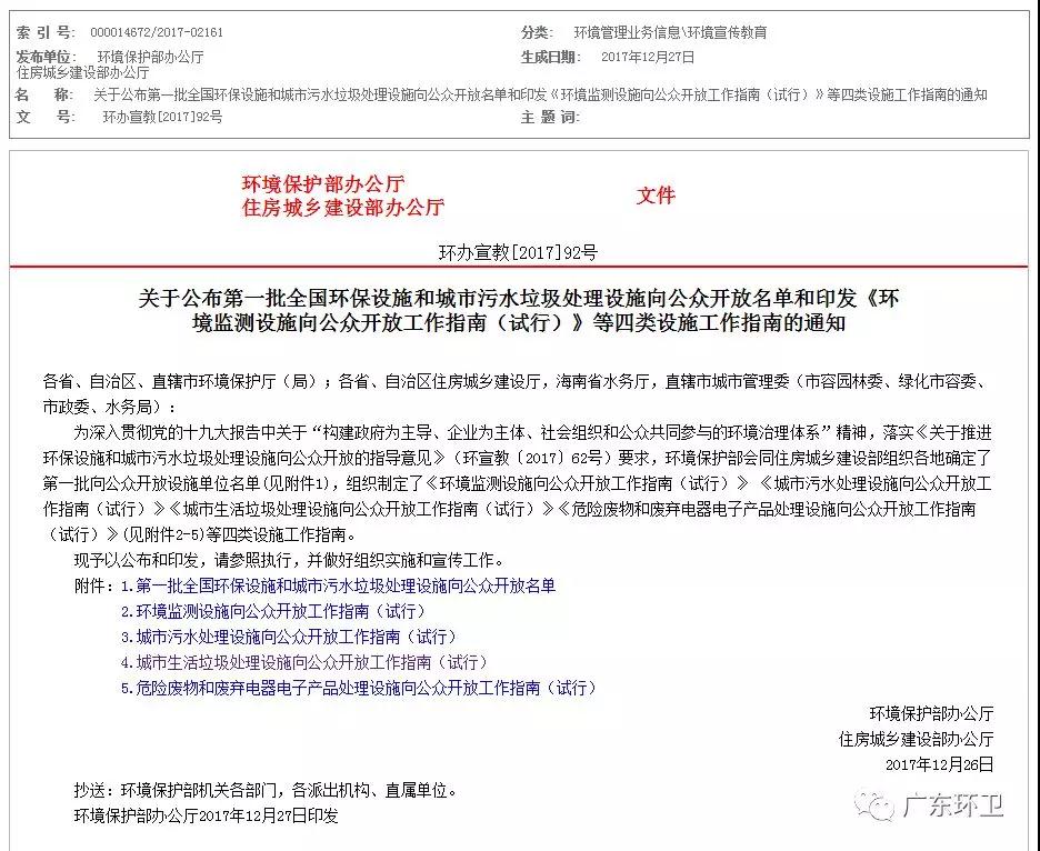 重磅|環保部住建部公布首批全國環保設施和城市污水垃圾處理設施向公眾開放名單