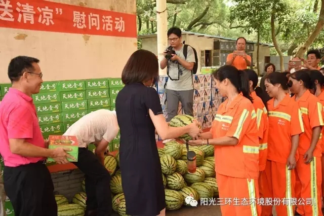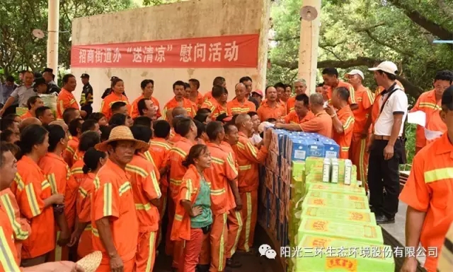 炎炎夏日送清涼,悠悠甘甜留心間!一線員工紛紛表示要繼續發揚“寧愿一人臟、換來萬家凈”的環衛精神,用自己的實際行動,以更高的標準、更大的熱情投身市容工作、創文工作,全力打造美麗招商、創文招商!