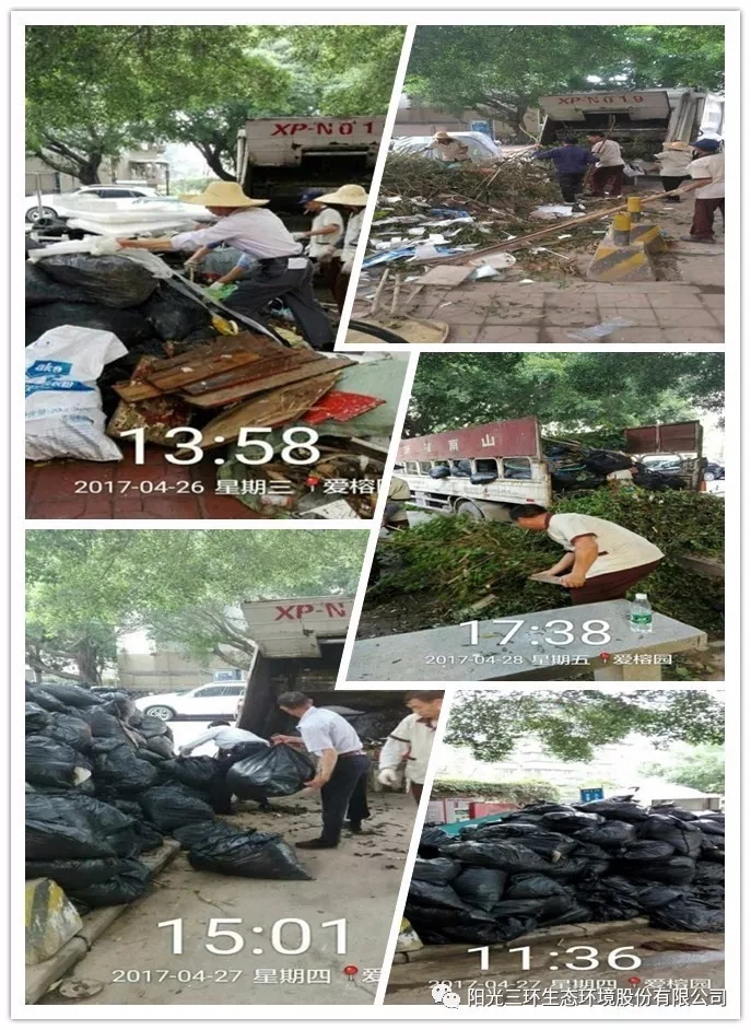 我司后海片區(愛榕園、文竹園、榆園、桂園)自今年4月進場以來,針對前期遺留的臟、亂、差的環境,進行了兩次開荒保潔;清理了十八車(垃圾壓縮車)小區內樹葉、垃圾、雜物;對天臺、樓梯進行了沖洗。經過所有員工的辛苦努力,各小區環境衛生質量大幅提升,獲得了業主的高度稱贊和鼓勵。