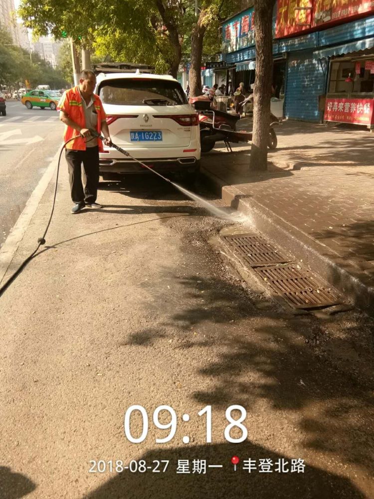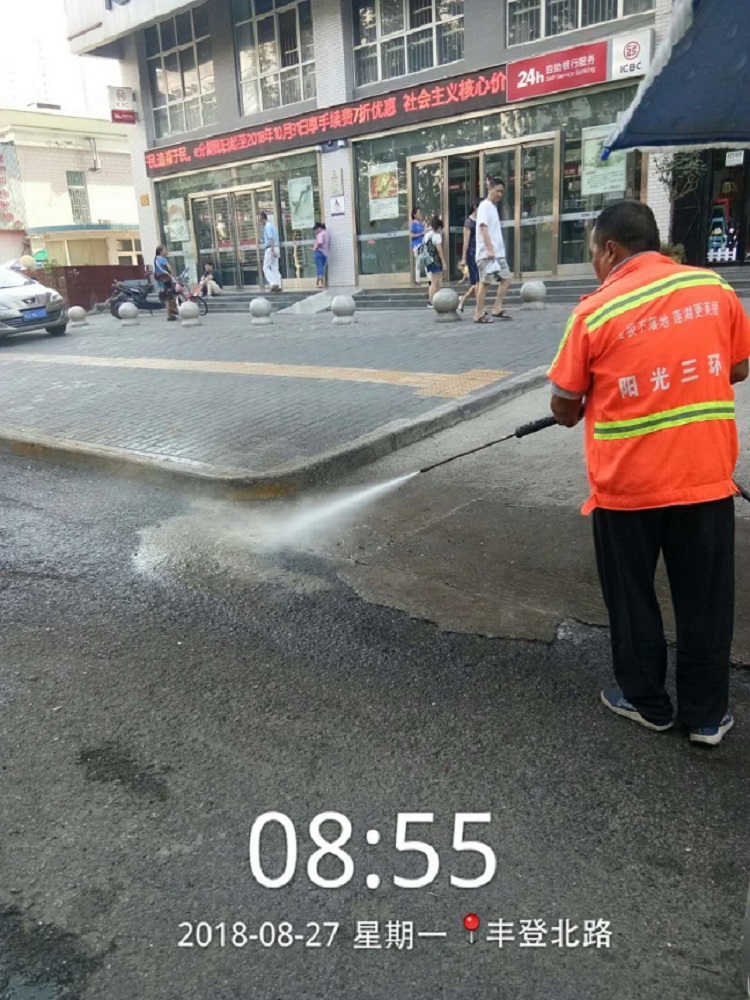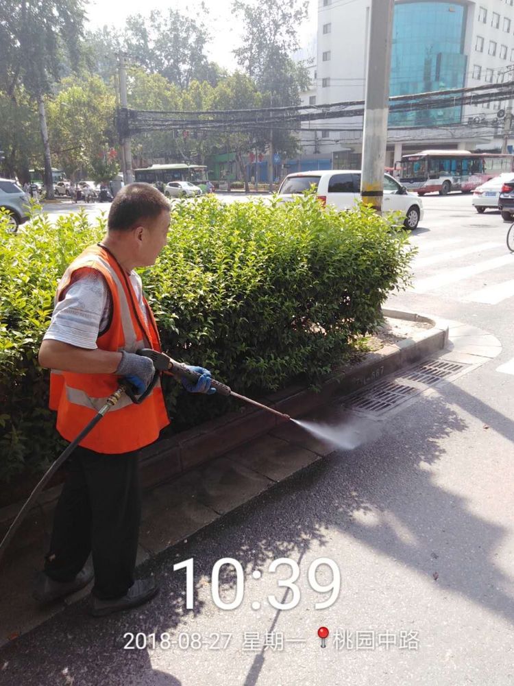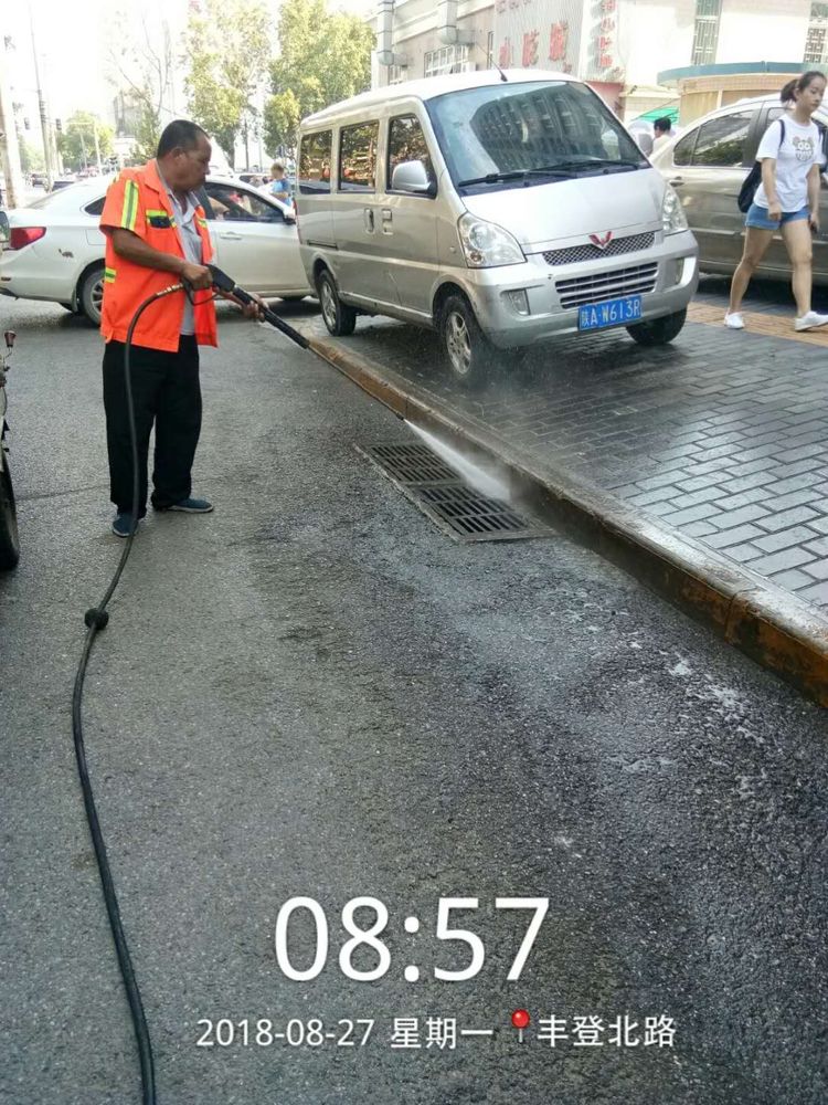 8月27日,為落實"井長制"長效機制,陜西西安桃園路陽光三環(huán)按照上級要求,人機結(jié)合,白天組織保潔員使用高壓水槍對人行橫道及慢道進行全面沖洗,清掃衛(wèi)生死角及下水井口,確保道路見本色。夜晚人機相互配合,維護良好的市容形象。