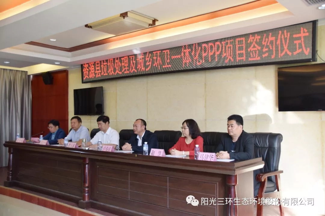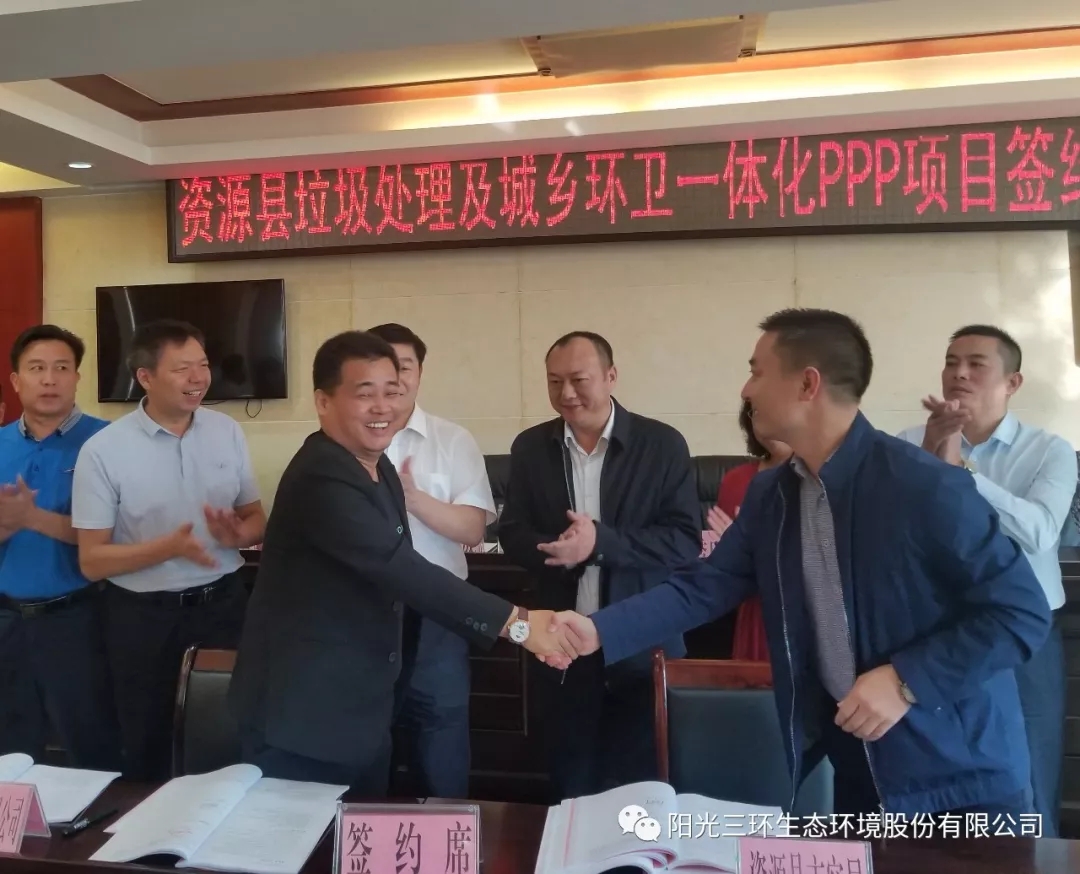 資源縣市容管理局與我司全資子公司廣西資源陽光三環生態環境有限公司就資源縣垃圾處理及城鄉環衛一體化PPP項目正式簽約。