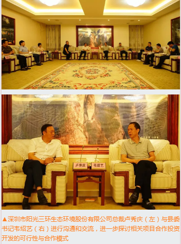 7月3日,深圳市陽光三環生態環境股份有限公司總裁盧秀慶組織本公司和中國水業集團有限公司技術專家組成考察團到資源縣考察、洽談生物質發電等相關項目工作。
