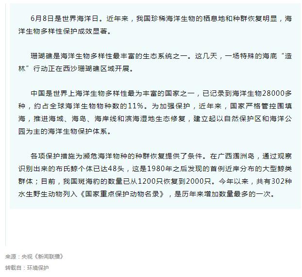 我國對海洋生物多樣性保護有多努力,一條視頻全懂了。