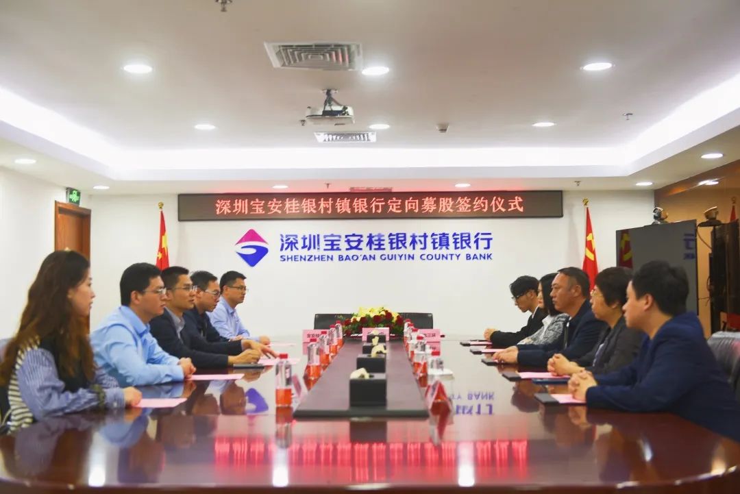 4月19日,深圳市陽光三環生態環境股份有限公司與深圳寶安桂銀村鎮銀行舉行定向募股簽約儀式,寶桂銀行黨委書記姚善譯、行長梁毅、副行長盤毅、副總經理徐圳潔、綜合辦公室副主任佘穎與陽光三環總裁盧秀慶、常務副總裁和慧、副總裁鄭楠潛等人出席會議,并見證了本次簽約儀式。