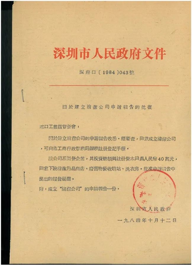 1984年由深圳市政府特批、深圳市人民政府紅頭文件批準成立,深圳第一家清潔公司--蛇口工業(yè)區(qū)清潔公司(2002年改名為陽光三環(huán),下文統(tǒng)稱陽光三環(huán))。