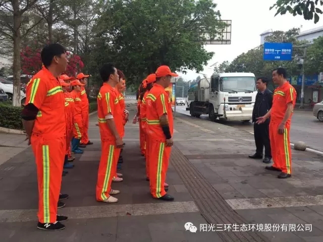 海口高新區林局長作了進場重要指示:首先強調安全管理的重要性,堅持“安全第一、預防為主、綜合治理”的方針,牢固樹立“以人為本,安全發展”的理念;要求員工嚴格遵守公司各項規章制度,認真做好本職工作;希望陽光三環不負眾望,創造高新區環衛綠化養護服務的新標桿。高新區環衛綠化養護服務的海口項目部全體員工,將以飽滿的工作熱情、兢兢業業的工作態度投入到新的工作崗位,竭誠為海口國家高新技術產業開發區提供優質、專業的園區環衛綠化養護服務。