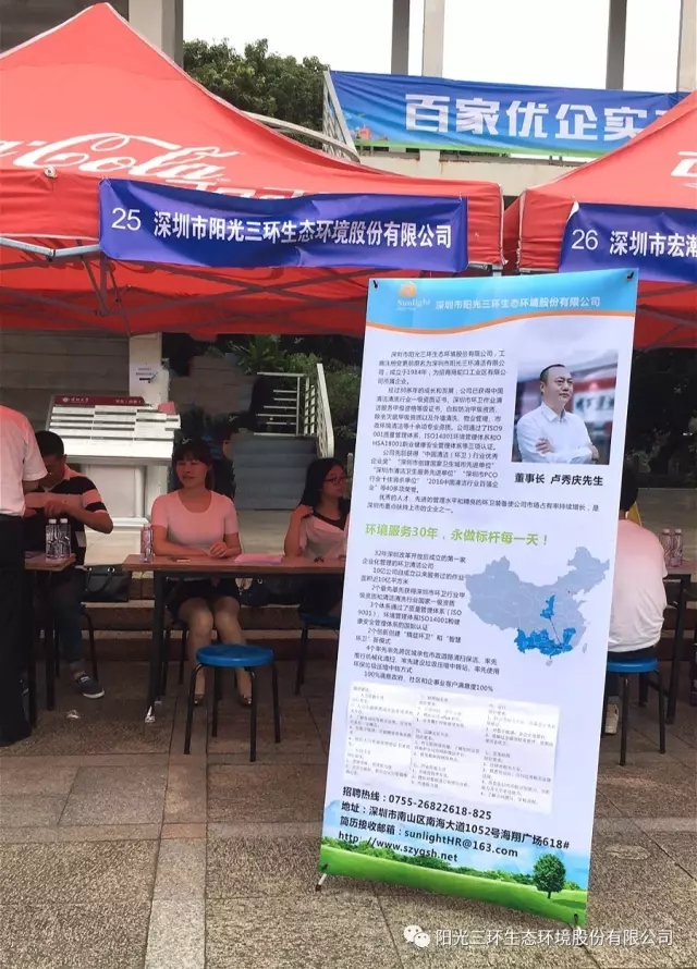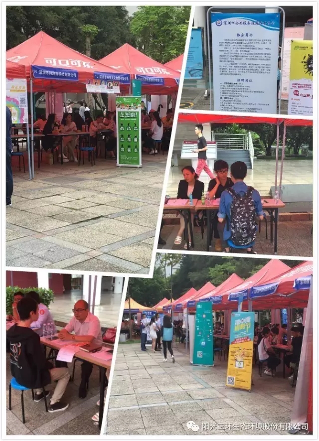 公司人力資源中心副總陳安安帶領公司招聘組,深圳市公共服務設施維護協會秘書長賀斌帶領協會招聘組,協同參與了此次校園招聘會。招聘會現場,即將畢業的大學生們積極參加面試,期待加入陽光三環大家庭。