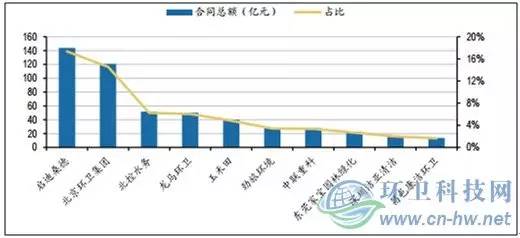 2016年環(huán)衛(wèi)行業(yè)新簽合同總額前十企業(yè)