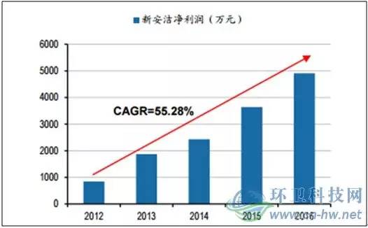 隨著政府對(duì)公共事業(yè)投入的持續(xù)增加,新安潔的盈利總額也在迅速擴(kuò)大。2016年公司凈利潤(rùn)4912萬(wàn)元,近5年復(fù)合增長(zhǎng)率55.28%。行業(yè)發(fā)展的迅猛,帶來(lái)企業(yè)登陸資本市場(chǎng)所需的利潤(rùn)累積。