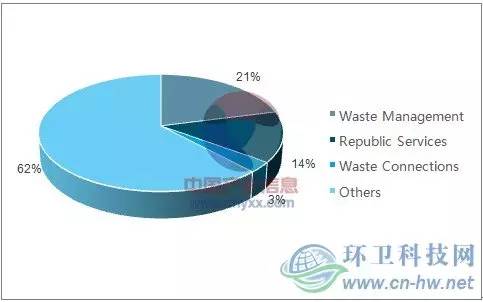 2014年美國(guó)環(huán)衛(wèi)三巨頭市場(chǎng)份額