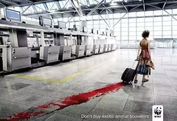 廣告詞:Don't Buy Exotic Animal Souvenirs. 別再購買稀有動物紀念品。