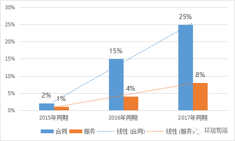 以北京國(guó)資委監(jiān)管的北控、首創(chuàng)、北環(huán)等三家涉及環(huán)衛(wèi)及垃圾收運(yùn)業(yè)務(wù)的國(guó)企為例,近三年來(lái)市場(chǎng)占比逐年提高。這三家企業(yè)2015年1-7月份的新簽項(xiàng)目合同金額總計(jì)占全國(guó)總額的2%,新簽項(xiàng)目首年服務(wù)金額總計(jì)占全國(guó)總額的1%;而2017年1-7月份的占比則分別高達(dá)25%和8%。