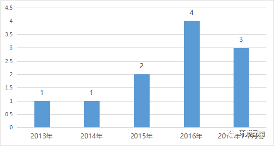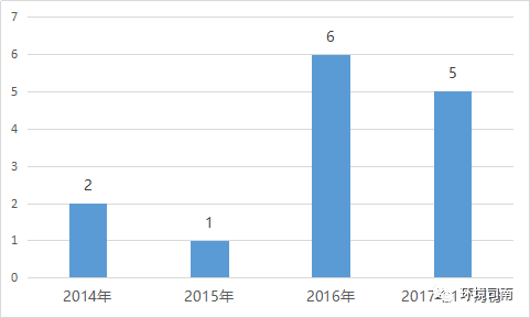 截止目前,共有14家環(huán)衛(wèi)服務(wù)企業(yè)掛牌新三板,其中2014年掛牌2家,2015年掛牌1家,2016年掛牌6家,2017年掛牌5家。