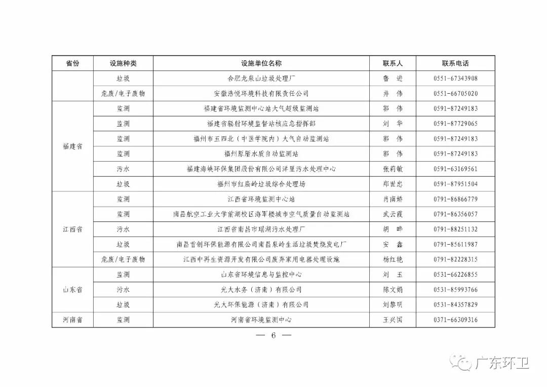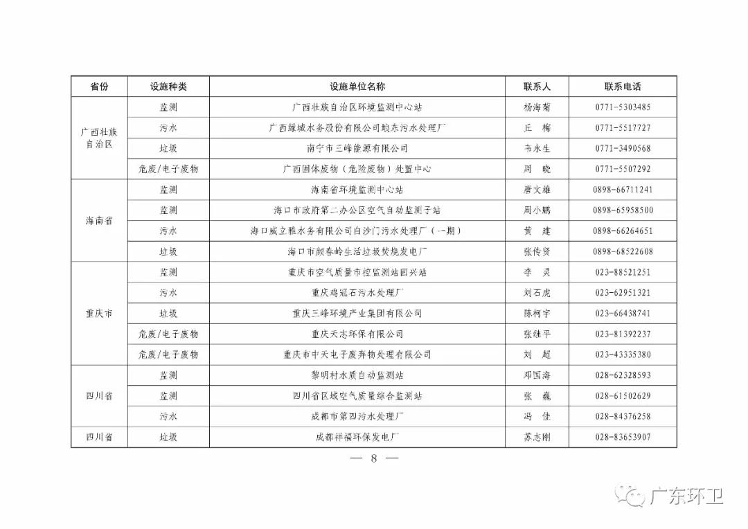 名單共包括全國31個省(區、市)的環境監測設施、城市污水處理設施、城市垃圾處理設施及危險廢物和廢棄電器電子產品處理設施4類共124家,同時公布了設施單位的聯系人和聯系電話,公眾可以通過電話聯系,預約參觀。