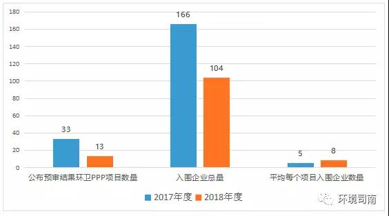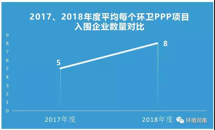 2017年度,平均每個環衛PPP項目有5家入圍企業/聯合體: