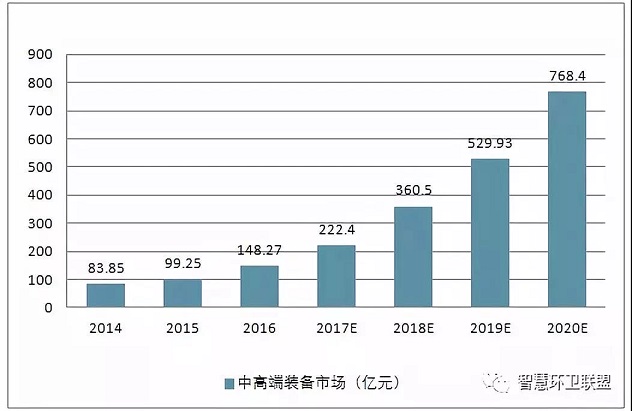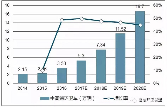 2014-2020年中國中高端環衛車行業市場空間及增長率測算