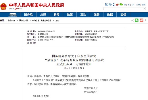 日前,李克強總理在全國深化“放管服”改革轉變政府職能電視電話會議上作了重要講話,為部署深化“放管服”改革,加快政府職能深刻轉變,優化發展環境,最大限度激發市場活力,對各重點任務制定了分工方案。