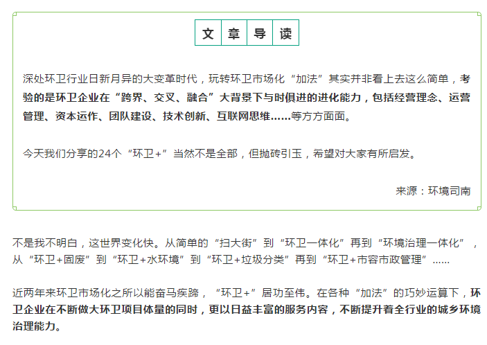 大整合丨環衛市場化的24個“加法”,“大環衛”將成新藍海??