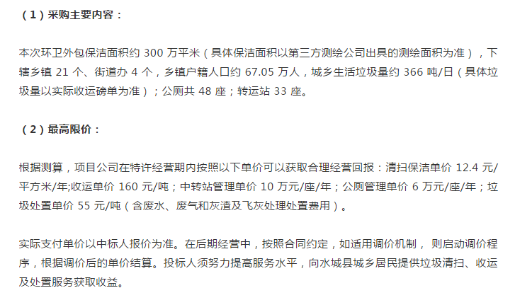 水城縣環衛一體化項目公示采購需求,預算12億元/20年