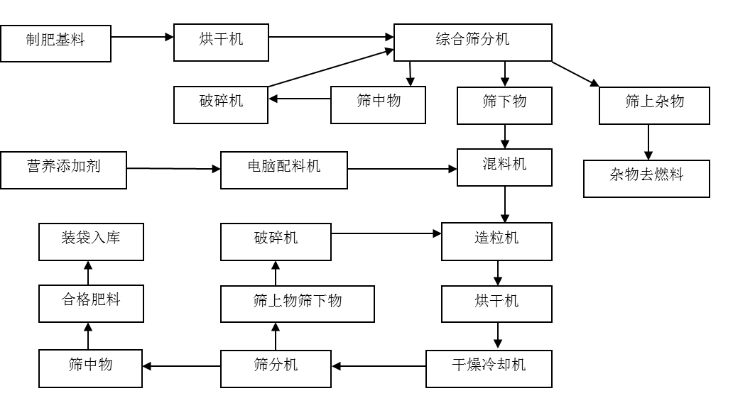 運(yùn)用水解腐熟技術(shù),對養(yǎng)殖糞便、城鎮(zhèn)糞便、餐廚垃圾進(jìn)行干化處理、水解腐熟處理、脫水得到干燥物料,把水解處理所產(chǎn)生的脫水固體經(jīng)過粉碎后在混料機(jī)中均勻混合,將培養(yǎng)好的制肥微生物菌劑向粉碎肥料中噴灑,制成微生物光能有機(jī)肥,造粒或者不造粒直接低溫干燥,使肥料含水量低于15%,脫水過程中產(chǎn)生的水解密水則可作為培養(yǎng)微生物菌劑的營養(yǎng)液。水解腐熟后的出產(chǎn)物就是高性能有機(jī)肥的基礎(chǔ)肥料,可以生產(chǎn)各類專用有機(jī)肥和有機(jī)土壤改良劑,生產(chǎn)的有機(jī)肥產(chǎn)品質(zhì)量優(yōu)良,具有保水保肥長效、改良土壤、改善果實(shí)品質(zhì)的功能。