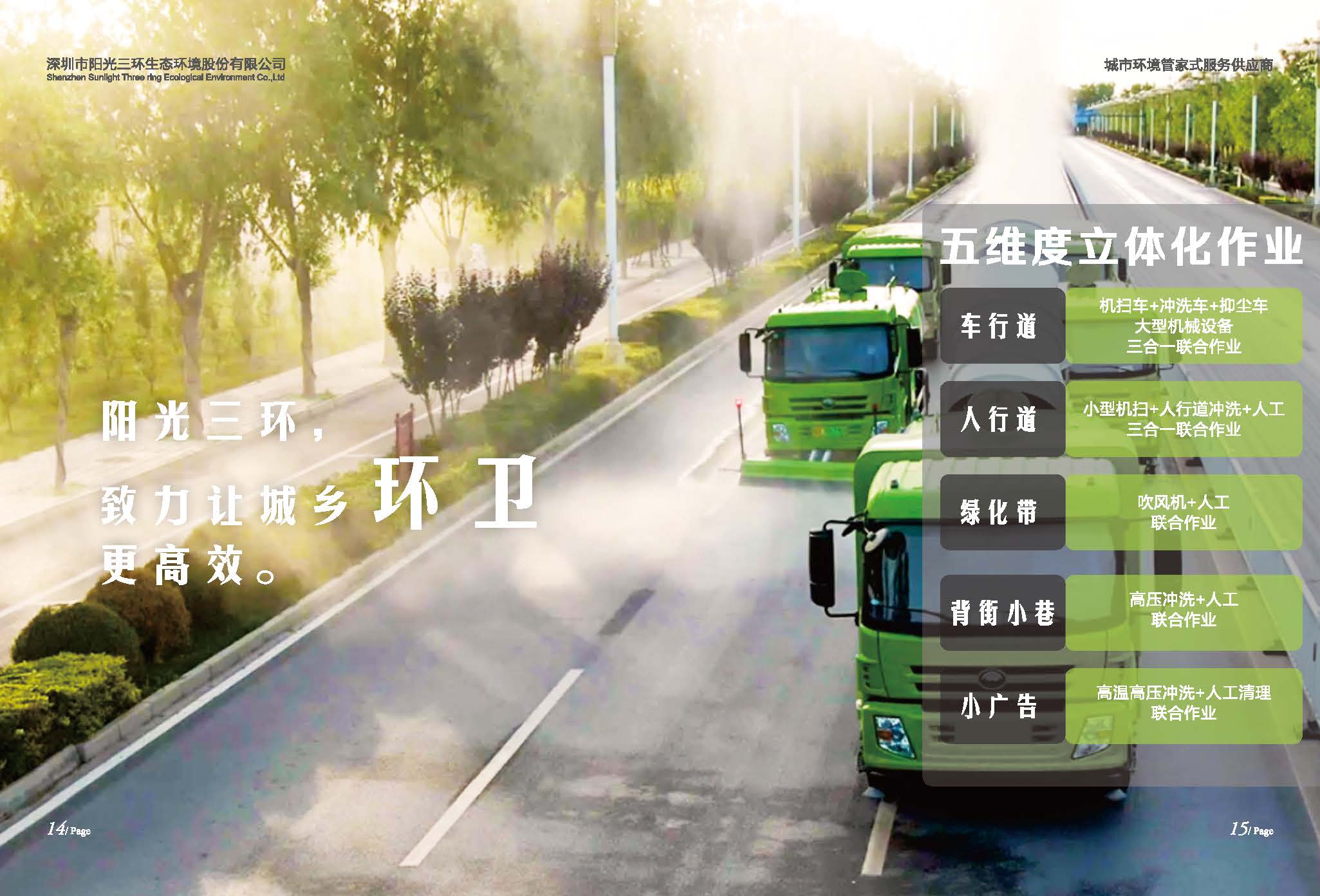 公司引進(jìn)先進(jìn)的設(shè)備和技術(shù),采用全機(jī)械化作業(yè)、人工清掃作業(yè)和機(jī)械人工配合作業(yè)模式,提供專業(yè)的城鄉(xiāng)主干道、次干道、快速路及環(huán)線和城中村的清掃保潔服務(wù)。公司秉承"無垃圾堆積、無積水積泥、無痰跡煙蒂、無果皮紙屑、無土石雜草“和“街道凈、溝眼凈、邊角凈、果皮箱凈、花壇凈”的“五無五凈”保潔理念,實(shí)現(xiàn)優(yōu)質(zhì)的道路清掃保潔服務(wù)。
